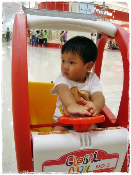到了板橋環球...還先幫小鬼借了台車車...看他在車上也不吵的陪我逛...真好..